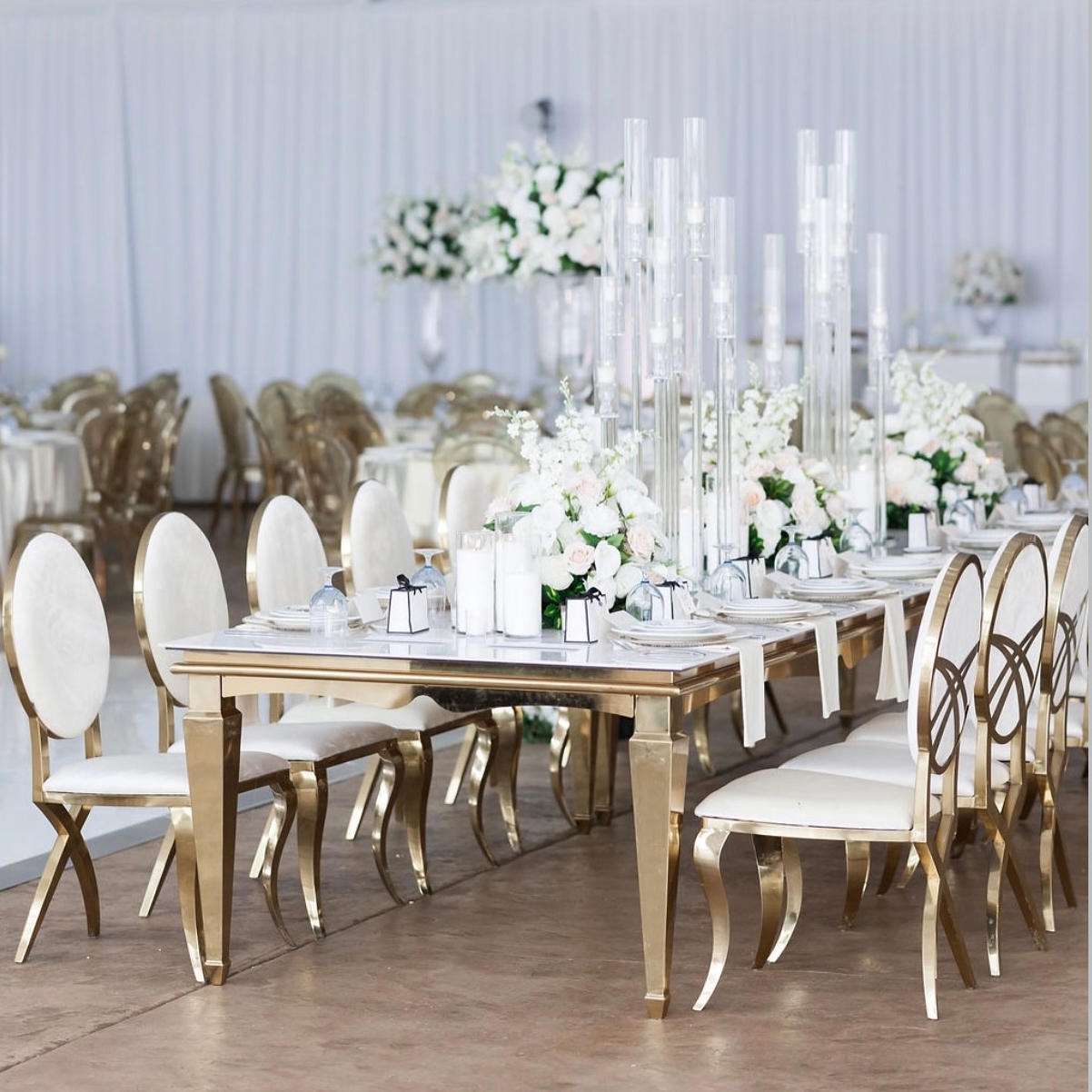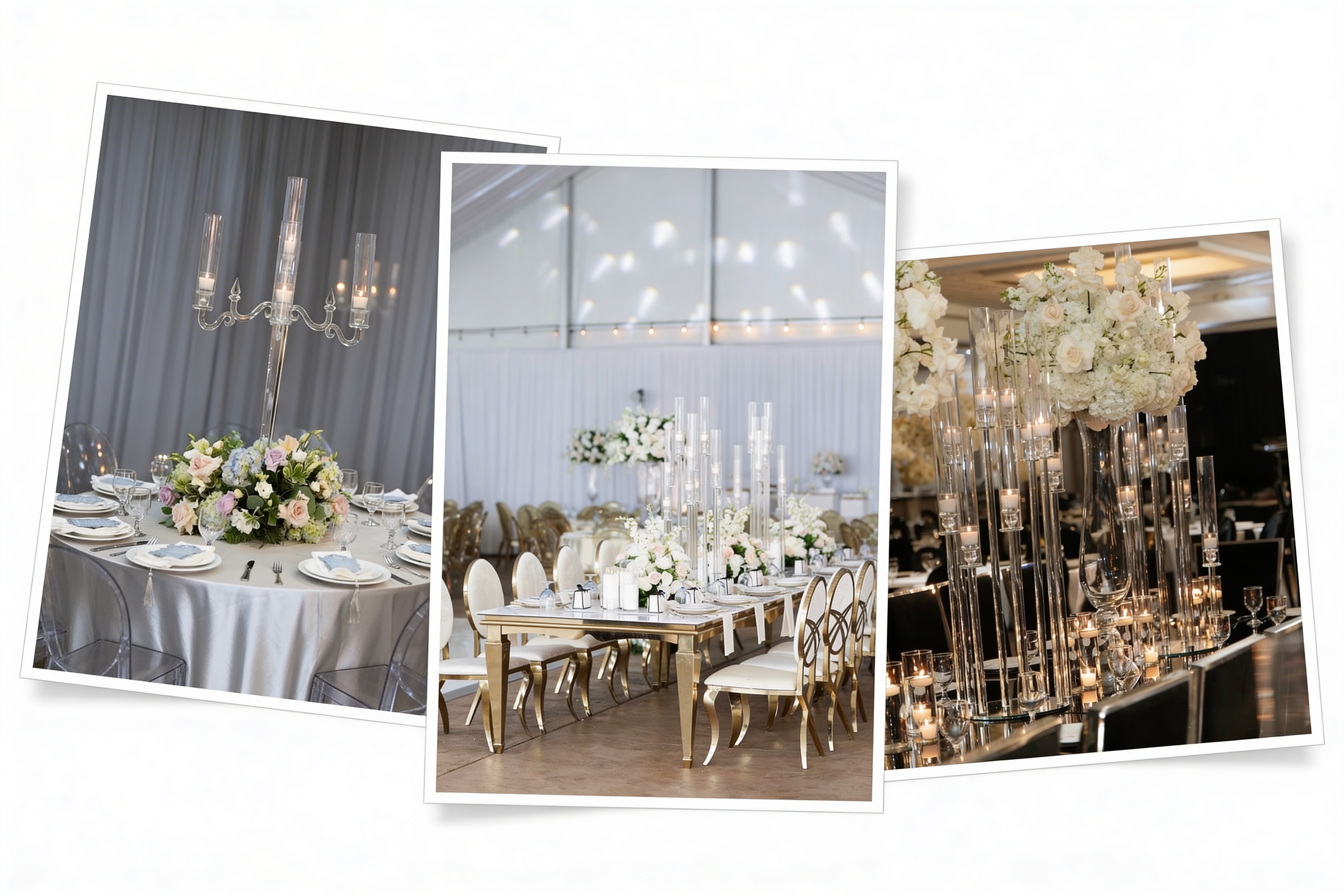 Premium inventory: an extensive collection of linens, tableware, seating, lighting, and décor curated for upscale events.