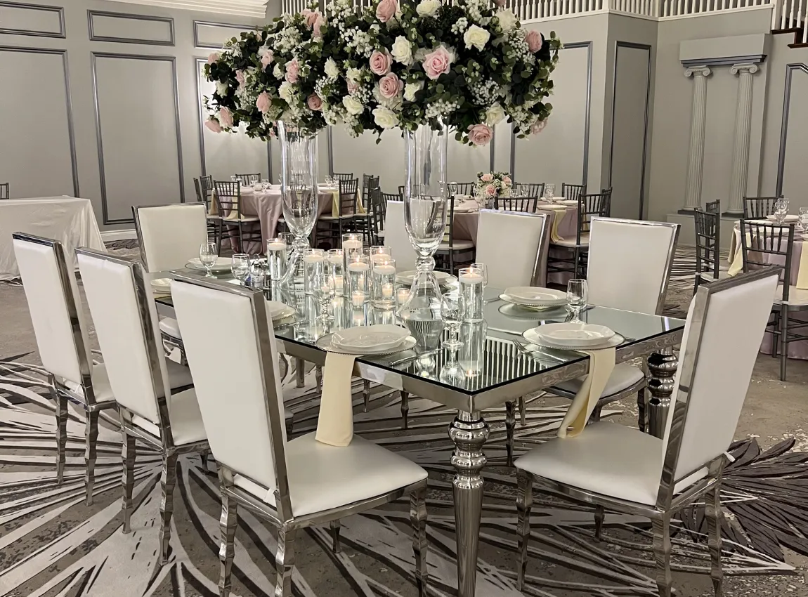 Explore luxury event tables in Detroit designed for elevated weddings, corporate galas, and private celebrations. From custom mirror crescent head tables to serpentine statement layouts and practical banquet tables, ACE Events & Rentals Detroit curates premium event furniture rental across Metro Detroit including Dearborn, Birmingham, Bloomfield Hills, Troy, Novi, Farmington Hills, Livonia, and Ann Arbor.